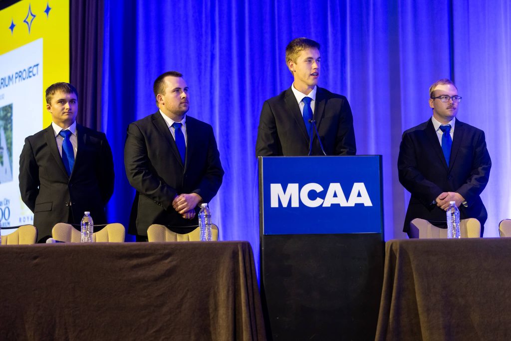 The Career Development Committee recognized a student who did the best job presenting their proposal, whether or not their team won. The audience members voted live between schools and ultimately Hans Stelpflug of the University of Wisconsin-Stout was awarded a trophy, a $500 gift card, a complimentary seat in MCAA’s Preparatory Institute for Project Management, and the title of 2023-2024 Most Valuable Presenter.