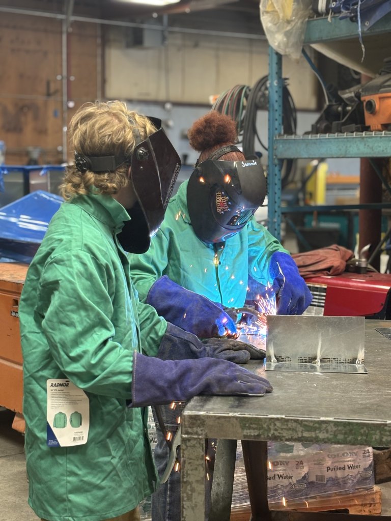 Eight students completed over 24 hours of hands-on instruction in sheet metal, plumbing, pipefitting, and welding. Under the mentorship of UMW’s union tradespeople, students completed projects such as a soldered “Pipe Man” sculpture, a welded metal star, and a custom-fabricated toolbox. A collaborative ductwork assembly project offered students a practical glimpse into how components come together on a jobsite.