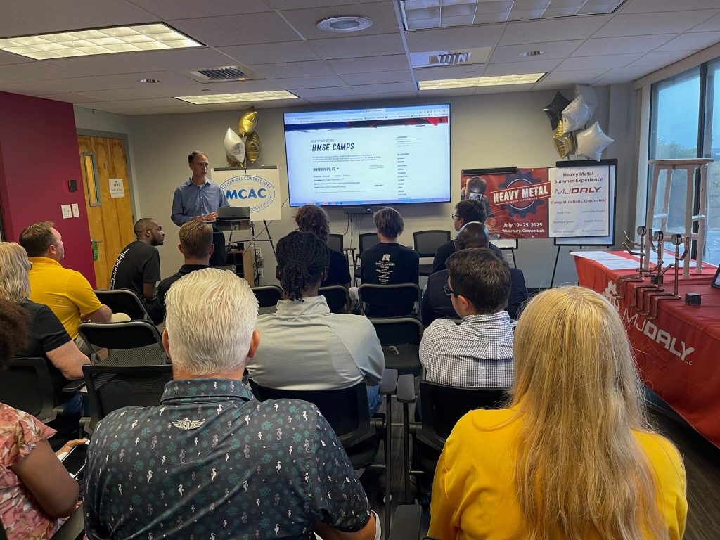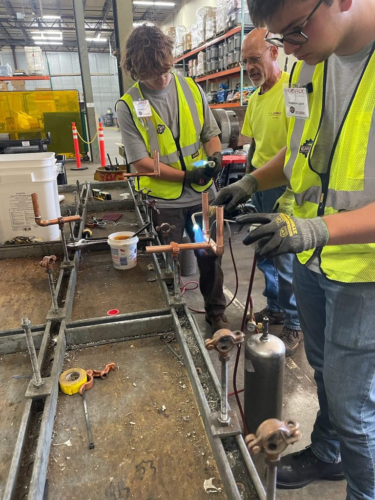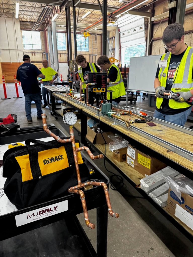 MJ Daly hosted Connecticut’s first-ever HMSE camp, welcoming four participants for a three-week introduction to mechanical contracting. Students explored welding, copper and plastic piping, and sheet metal work, gaining foundational skills and career insights.