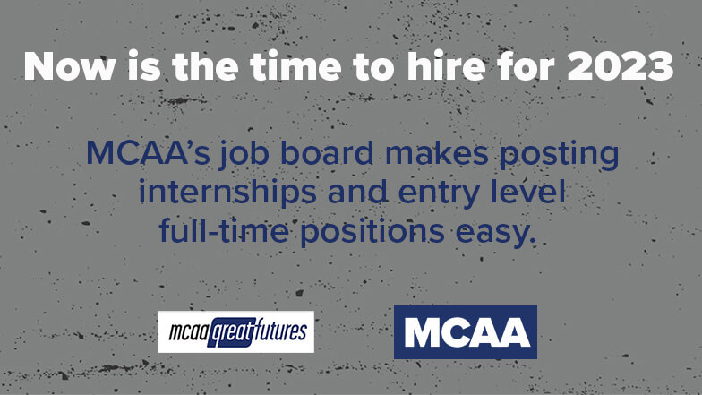 The clock is ticking on end of the year to-do lists. Have you secured your summer intern for 2023? While this may seem like an item that can be pushed to the bottom of your list, most students are already committing to summer plans before 2022 comes to a close. This is especially true for May graduates looking for full time employment. MCAA recently updated its job board to make posting internships and entry level full-time positions easy. Take the first step to filling those openings – post your positions today!