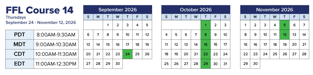 - On-time completion of all requirements is required for participants to receive an FFL Diploma.