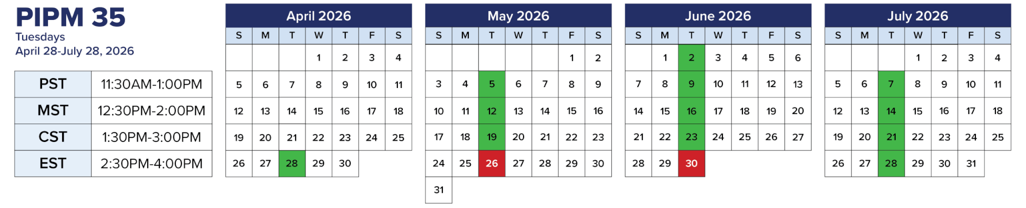 PIPM Class 35, April-July 2026, Tuesday Afternoons