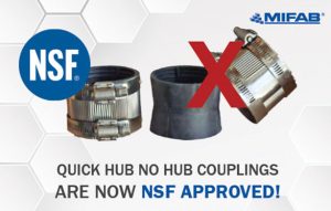 MIFAB’s revolutionary Quick Hub No Hub Couplings are now NSF approved! Quick Hub Couplings are much faster than traditional couplings, yet they are still held to the same high standards.