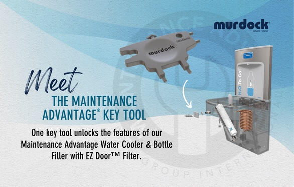Meet the Maintenance Advantage® key tool from Murdock Mfg., a division of MGI. This all-in-one tool unlocks all the maintenance features on the Water Cooler and Bottle Filler with EZ Door™ filter.
