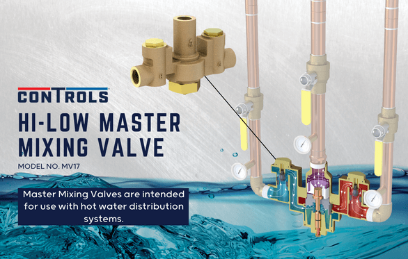 The ConTrols® Hi-Low Master Mixing Valve mixes hot water from the heater with cold water to the right temperature for the distribution system. ConTrols is a member of Morris Group International.