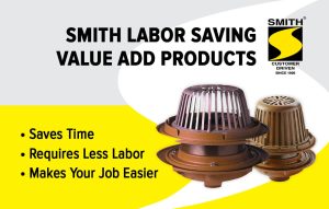 Jay R. Smith Mfg. Co. Labor Saving Roof Drains are engineered to save installation costs and are designed to fit many different applications. The combination Roof and Overflow Drain eliminates the need for an underdeck clamp and needs just one rectangular roof penetration. The Adjustable Roof Drain allows for precise height setting, eliminating the need to buy drains in multiple heights.