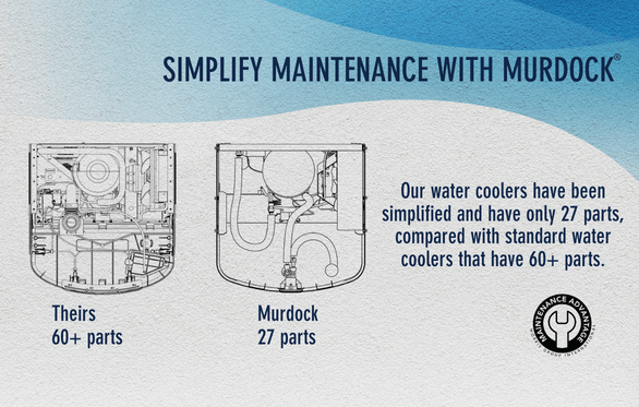 Simplify maintenance with Murdock®, a member of Morris Group International. Murdock Maintenance Advantage® water coolers have 27 parts, compared with standard water coolers that have 60+ parts.