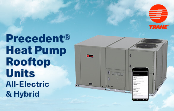 Trane’s new heat pump and dual fuel Precedent rooftop units, now up to 25 tons, offer multiple efficiency levels and customization options to serve variety of commercial applications.