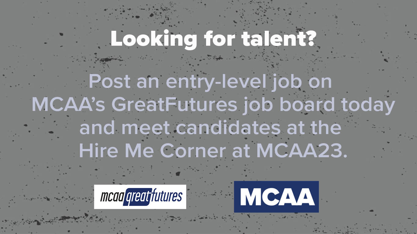 Looking for Talent? Post an Entry-Level Job Today & Meet Candidates at the Hire Me Corner at MCAA23