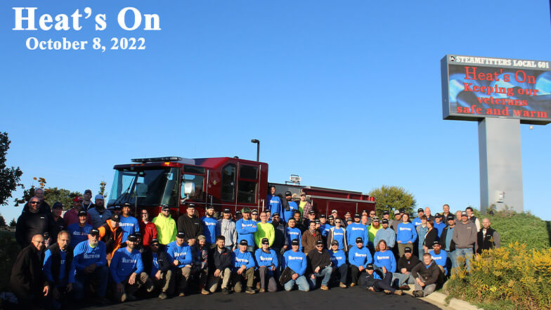 Nearly 70 volunteers from the Madison Area Mechanical and Sheet Metal Contractors Association (MSC) and United Association (UA) Steamfitters Local 601 serviced the homes of 59 veterans during the 34th Annual Heat’s On event on Saturday, October 8, 2022. The annual event ensures the safety of those who served our country.