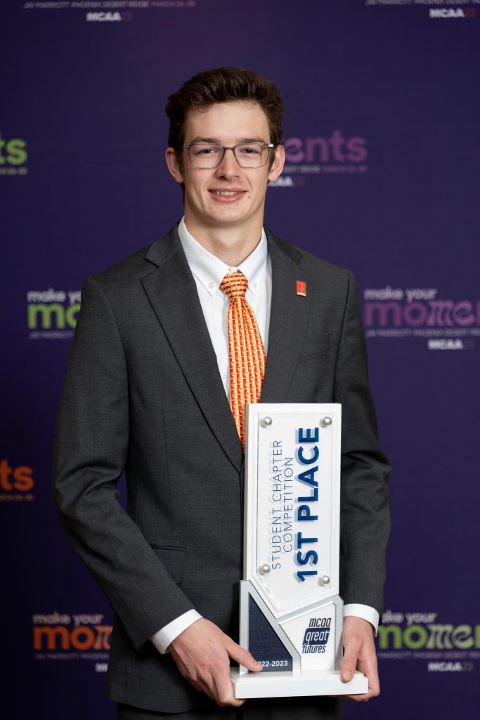 “The biggest takeaway from this was for me to pay attention. I’m a sophomore and I have learned so much from this project, including how to make an RFP. At the begging of the year I had no idea and thanks to this team and the competition, now I have that knowledge. It was also a lot of fun to talk with other students from different chapters. I met so many people and we still keep in touch. When we left MCAA23 in March we said goodbye and see you at GreatFutures in September!”