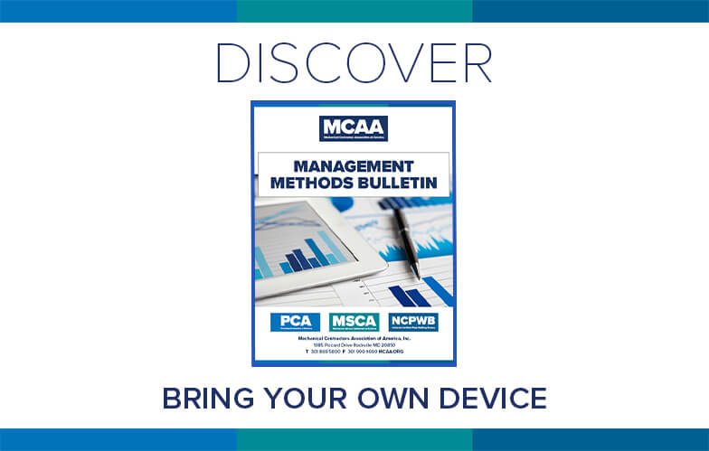 Many employees are more comfortable using their own mobile devices on the job. MCAA’s Bring Your Own Device – Is It Right for Your Company? explores the advantages and disadvantages of a bring your own device (BYOD) policy to help mechanical contractors decide whether to adopt such a policy. It’s just one of MCAA’s educational resources that are free to MCAA members as a benefit of membership.