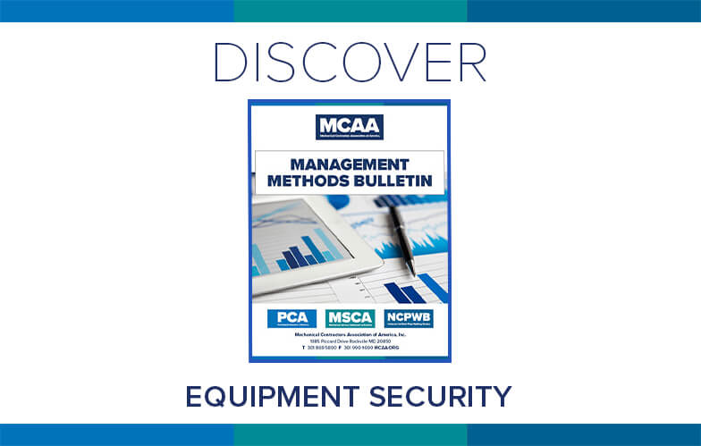 The layout of a construction job site and its corresponding security plan often make the difference between controlling losses and suffering costly thefts. MCAA’s Contractor’s Equipment: A Guide to Better Security provides general guidelines for improving security. It’s just one of MCAA’s educational resources that are free to MCAA members as a benefit of membership.