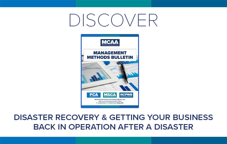 Every company should have plans to deal with emergencies and disasters. Well-executed plans can save lives, minimize the loss of assets, and even save the entire business. MCAA’s Disaster Recovery: Getting Your Business Back in Operation After a Disaster provides tips to help you develop and manage your company’s emergency response so that a disaster does not result in catastrophic losses for your business. It’s just one of MCAA’s educational resources that are free to MCAA members as a benefit of membership.
