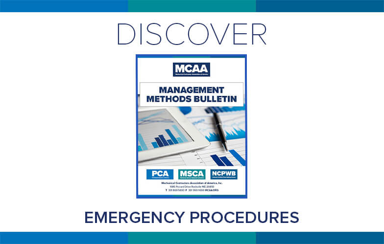 Emergencies, disasters, accidents and injuries can occur at any time, usually without warning. MCAA’s Emergency Procedures will help you develop an emergency action plan to enable you and your employees to act quickly and decisively in the event of an emergency. It’s just one of MCAA’s educational resources that are free to MCAA members as a benefit of membership.