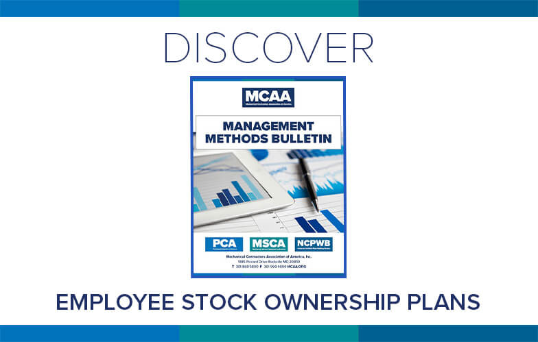 Mechanical contractors may benefit from Employee Stock Ownership Plans, innovative planning devices allowing for tax-favored transfers of stock ownership in a closely held business. MCAA’s Employee Stock Ownership Plans reviews the benefits and disadvantages of these plans to assist in strategic planning. It’s just one of MCAA’s educational resources that are free to MCAA members as a benefit of membership.