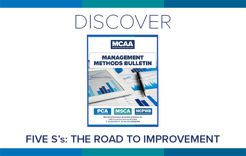 Seeking to improve shop productivity, Kinetics adopted the 5 S’s, a variation of lean thinking. By applying these actions, Kinetics’ employees were able to reduce wasted time, materials and information, thereby increasing their productivity. MCAA’s Five S’s: The Road to Improvement shares the process and the results the company was able to achieve. It’s just one of MCAA’s educational resources that are free to MCAA members as a benefit of membership.