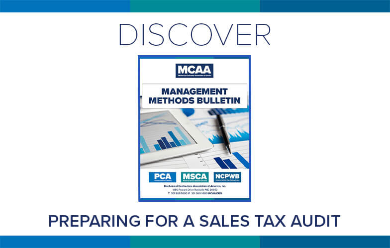 In the best of circumstances, state and local tax audits of construction contractors eventually turn adversarial and are not to be treated lightly. MCAA’s Preparing for a Sales Tax Audit will help you understand the process and the rules so that you can resolve any issues with practicality and technical proficiency. It’s just one of MCAA’s educational resources that are free to MCAA members as a benefit of membership.