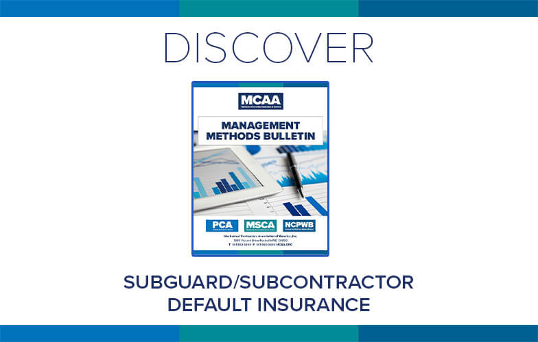 General contractors looking to protect themselves with subguard or subcontractor default insurance (SDI) may request detailed financial information from potential subcontractors. MCAA’s Subguard/Subcontractor Default Insurance explains why this happens, and how these policies may impact mechanical contractors. It’s just one of MCAA’s educational resources that are free to MCAA members as a benefit of membership.