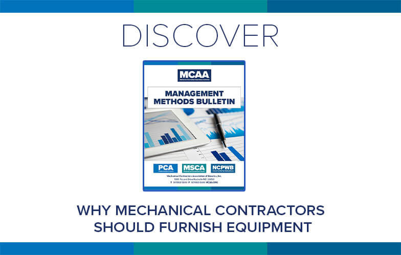 While direct purchasing appears to offer advantages, hidden pitfalls may increase costs and delay project completion. MCAA’s Why Mechanical Contractors Should Furnish Equipment examines these advantages and pitfalls, giving contractors a well-rounded perspective on owner concerns and how best to address them. It’s just one of MCAA’s educational resources that are free to MCAA members as a benefit of membership.