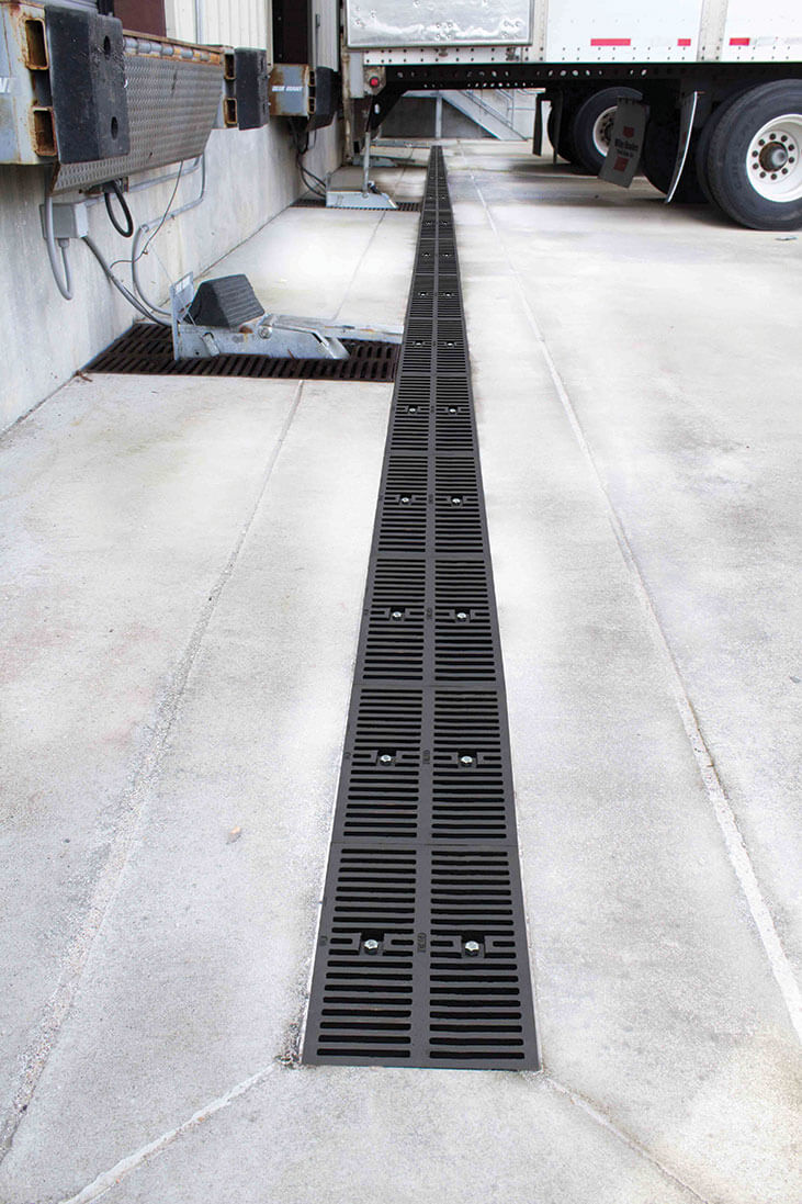 1. Identify the anticipated traffic traveling over the trench drain. Areas such as an airport runway will have significantly higher load requirements than areas devoted to pedestrian traffic and, therefore, require different materials. That much is obvious, but you also want to consider the direction a vehicle will be approaching the trench drain and the speed that traffic will be moving when it drives over the trench. Forklifts running parallel to the drain versus perpendicular are going to cause very different wear and tear on the drain, as will tractor trailers slowly backing up to a loading dock versus those speeding over the trench at 50 mph.