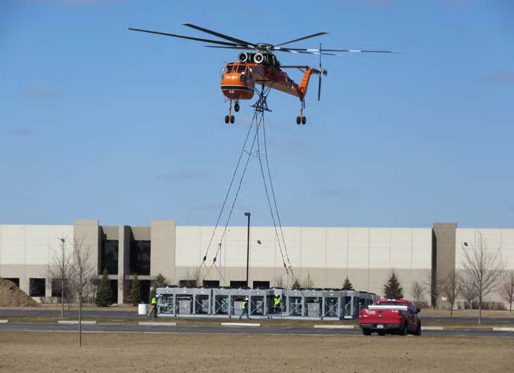 “The mechanical equipment was located in the middle of a 300,000-square-foot live data center complex. The pre-planning that Erickson and Conti undertook was exceptional and [the lift] went as planned. Each unit was precisely placed in a very efficient and safe manner. The Erickson Team took the time to visit the site twice, once meeting with the owner and the other with the Conti Team, making sure we all worked the plan and giving the customer a level of comfort,” said Victor Calleja, senior project manager for Conti Corporation.