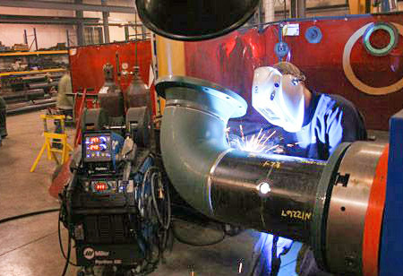 The fabrication shop used several PipeWorx welding systems along with a series of weld positioners. However, most of the local welding talent had been certified to the ASME codes using only stick and TIG welding processes in fixed positions. To remedy this issue, De-Cal worked with UA Local 396 to certify welders in MIG and fluxcored processes to UA and ASME codes.