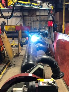 “The fact that we can weld slip on flanges is probably one of the most impressive tasks that the Novarc SWR is capable of,” Ray continued. “Also, we have gotten really efficient at welding stainless steel fabrication with the SWR, and this is helping tremendously with our efficiency. Our old way of welding stainless would be to TIG [tungsten inert gas] weld with using an ID [inner diameter] purge. A 16” schedule-10 weld would take two-and-a-half hours or so to get a purge set up and then weld out. We now can do a 16” schedule-10 weld in 12 minutes that will pass RT.” said Ray.