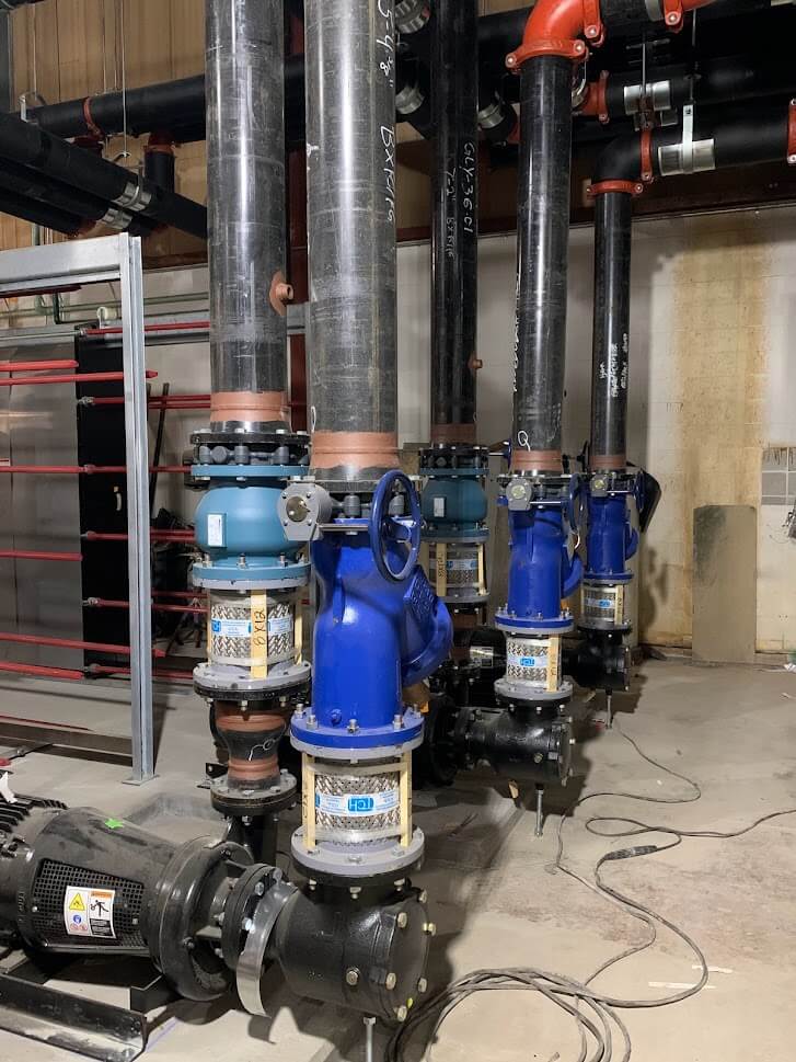 “Upon learning this, our NIBCO representative brought to our attention that they offered grooved butterfly valves that could eliminate the extra work,” said Richardson. “I’d estimate that nearly 80 percent of the valves on this project are grooved valves.”