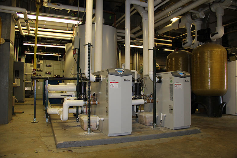 The facility’s original system was comprised of two 70-percent efficient water heaters tied into a vent that extended up through the building. The Lexington Plumbing team removed the old units and installed two 800,000 BTU per hour ARMOR models, stacked with two 500-gallon insulated storage tanks to provide maximum savings. With ARMOR’s flexible venting options, the new units could be vented directly though the sidewall of the building.