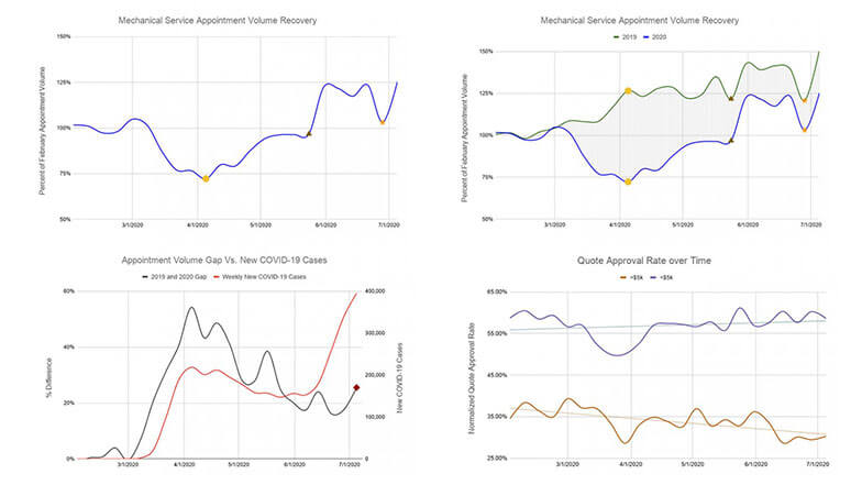 At ServiceTrade, we have a saying: “Feelings fool, and data rules.” If the recovery stalls and the appointment volume slows again, mechanical service contractors must be prepared to respond. The companies that respond based on data about what is happening in their business and with their customers will make better decisions than those who have to rely on their gut feelings. We have focused here on appointment volume and quote approvals. If you are not plotting those data points every week, you should start now.