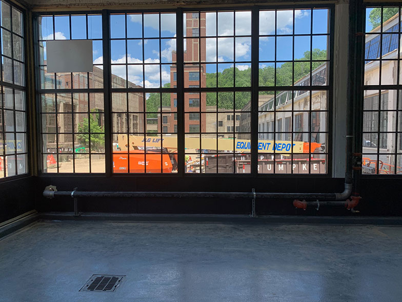 Floors were opened to place underground plumbing for the kitchen and bathrooms. Drains were installed for the brew deck. Nelson Stark also piped overhead water mains and gas lines for the brewpub. They installed the lines for the kitchen equipment, furnaces, boiler, and two domestic water heaters.
