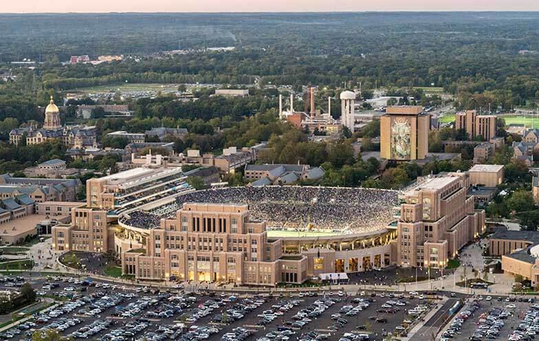 One of the most iconic sporting venues in collegiate athletics, Notre Dame Stadium is not only at the center of Notre Dame’s campus in Indiana, but also the center of the college football universe. Starting in 2014, the university began a 4-year campaign to transform the 88-year-old athletic complex and its surrounding areas into a year-round epicenter for academic and student life.