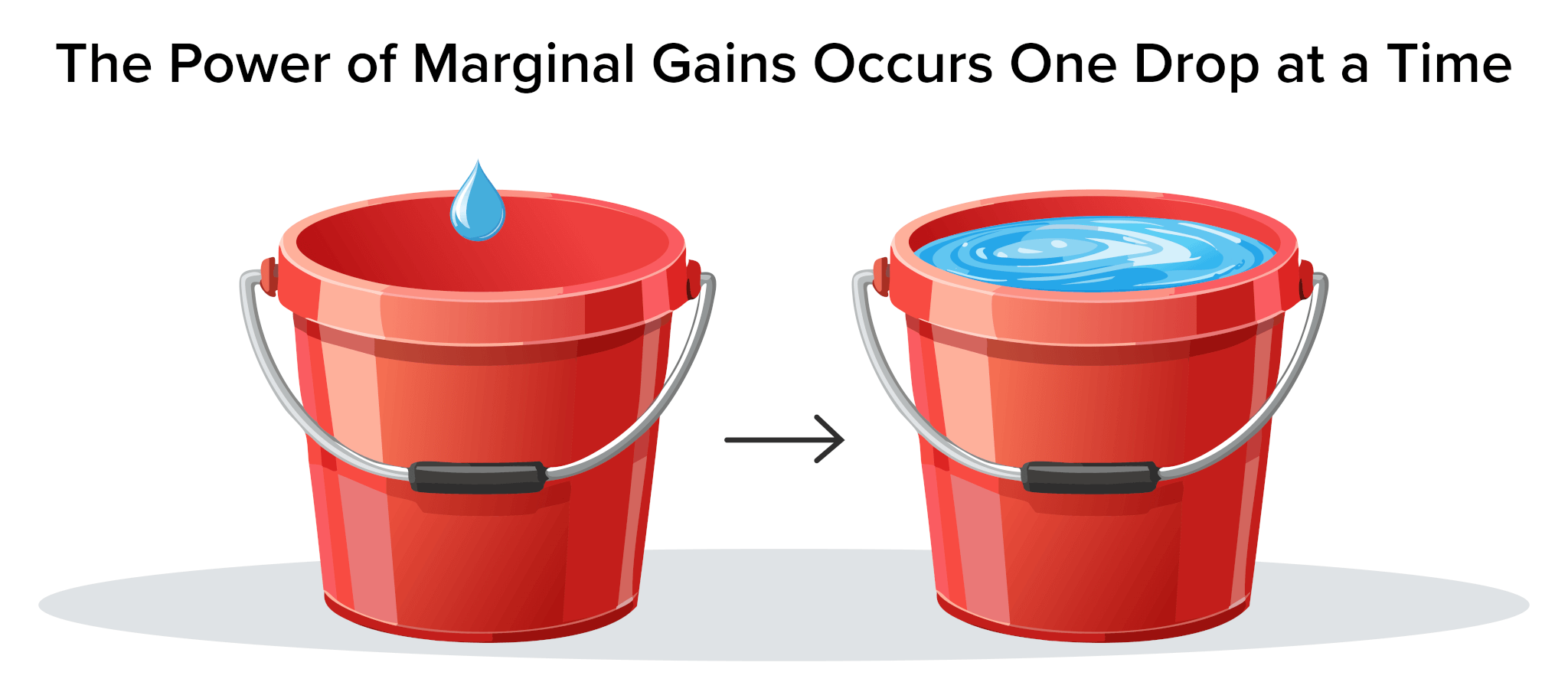 A single drop of water is pretty insignificant, but a consistent drip will fill a bucket over time. This principle of marginal gains—popularized by Sir Dave Brailsford in his transformation of British cycling—focuses on making one-percent improvements to achieve significant overall results.1 One percent may not seem like much, but over the course of one year it results in a staggering 3,678-percent improvement. Brailsford coined this phenomenon as “the aggregation of marginal gains.”2