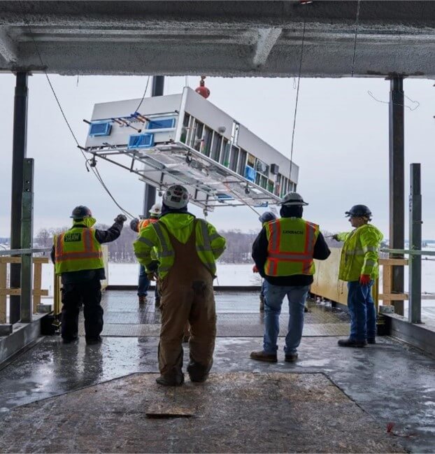 The prefabrication approach yielded other benefits for the project team. Workers were able to test, insulate, and tag all the products in the fabrication shop before delivering them onsite. Having products ready to install as soon as they were delivered helped mitigate the effects of the harsh Michigan winter onsite. The risk of exposure to COVID-19 infection was decreased because fewer workers had to be on the jobsite and those in the prefabrication shop were separated into workstations.