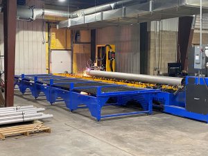 “In addition, it used to take two people to move, stage, and prep large pipe,” said Smith. “Now, with the automatic infeed bed, we can load pipe outside the building, convey into the building and right onto the machine bed. Prior to having the feeding racks we had difficulty loading heavy pipe—we had to use a crane, which called for more workers. We are saving in manhour costs, and we have increased the safety for our employees in all of our fabrications.”