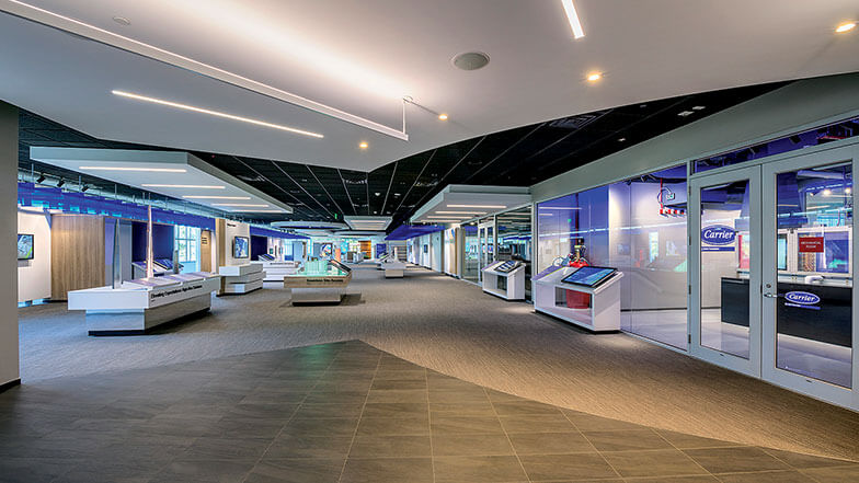 Completed in 2018, the 224,000-square-foot building was designed to showcase new technology for customers from around the world. The building reveals the unseen, putting the most advanced integrations of Carrier’s solutions and services in action and on display.