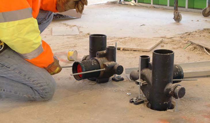 Z415-BZ and Z1400-BZ Leveling Drains and Cleanouts enabled the contractor to adjust leveling and height of drains and cleanouts after the pour was complete, eliminating the need to break up a floor to fix a drainage problem. MLP Plumbing estimates this saved them anywhere from 10 minutes to an hour per drain or cleanout.